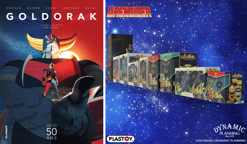 L'éditeur de produits dérivés Plastoy a lui aussi préparé des surprises à destination des collectionneurs. Le catalogue de la licence s'agrandit ainsi d'une dizaine de nouveaux produits : tirelires, figurines, ou encore porte-clés à l'effigie des personnages de l'univers Goldorak. Plastoy a fait appel à l'artiste français Jan Garet pour la réalisation des packagings, et a en parallèle prévu une PLV événementielle pour accompagner ces nouveautés.